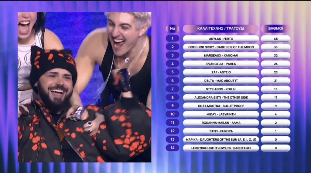 C’est quasiment au même moment des votes du Dora 2026 que les votes grecques ont débutés. Le système des notations des chansons étaient un peu plus sophistiqués puisque 25 % des notes provenaient d’un jury grec, 25 % d’un jury international et 50 % du vote du public.
