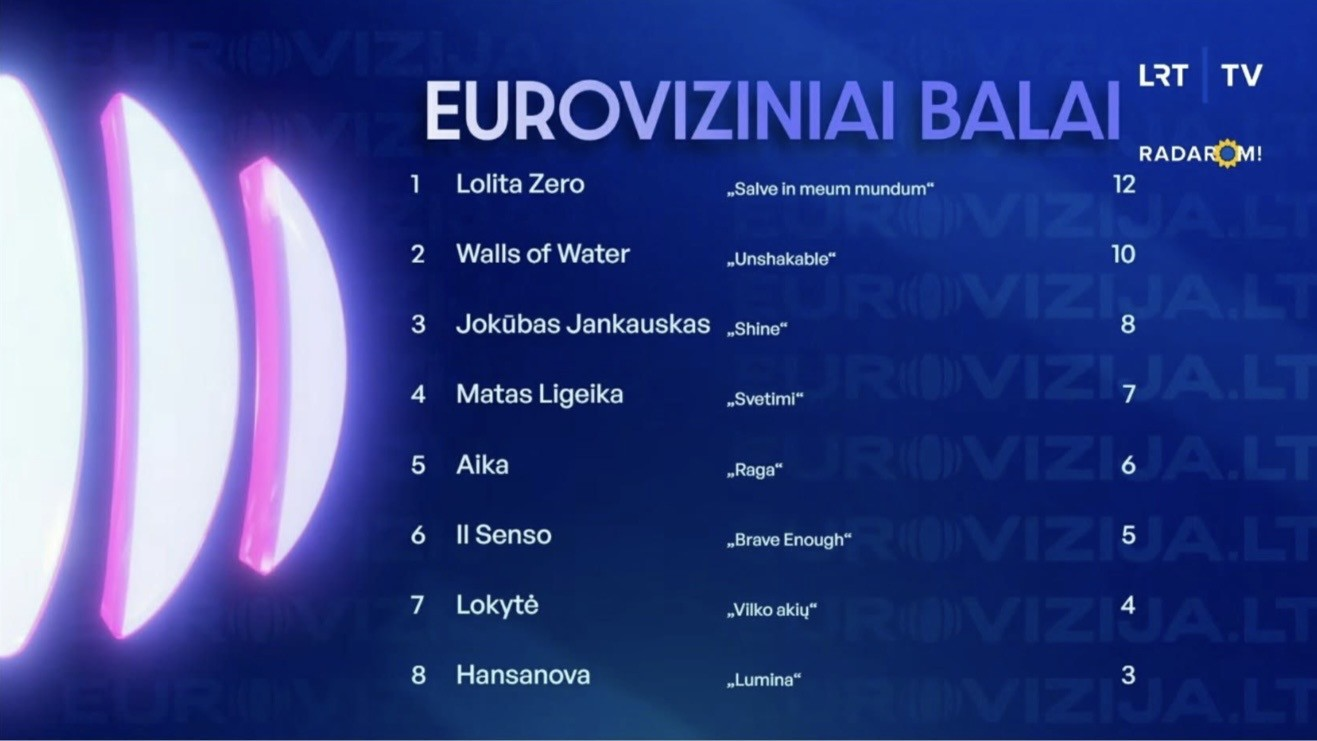 Une dernière demi-finale nationale Eurovision 2026 pour la Lituanie s’est déroulée hier soir sur la 1ère chaîne de télévision nationale de ce pays, la LRT.
